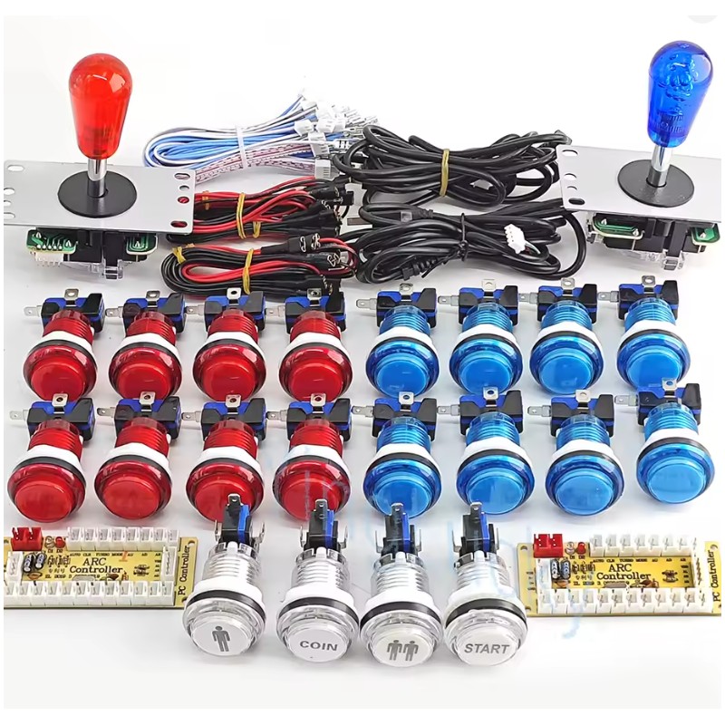 Arcade 2-Player KIT für JAMMA oder MAME Selbstbau Cabinet mit LED Microswitches, Encoder und US-Kegelgriff