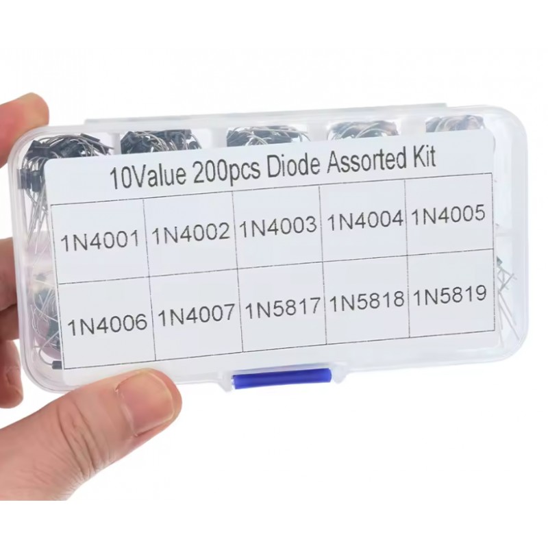 200 Stück 10 Werte Gleichrichterdioden-Sortiment-Set 1N4001 1N4002 1N4003 1N4004 1N4005 1N4006 1N4007 1N5817 1N5818 1N5819 mit Box