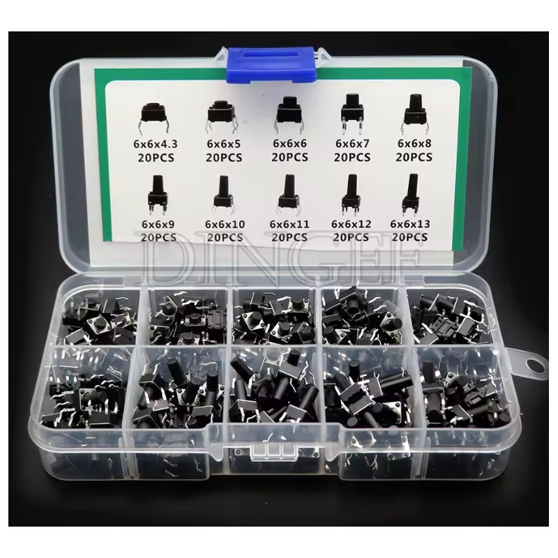 200Stk Micro Push Button Tactile Switch Sortiment in Box 6x6mm 10 Längen x 20 Stück