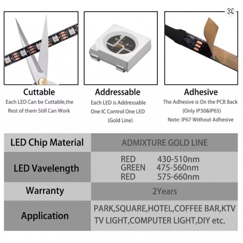 SMD5050 WS2812 RGB LED pixel Strip auto-adhésif