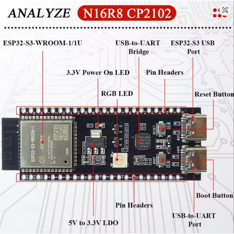 ESP32 S3 N8R2 development board Typ-C 2,4G Wifi BT Module